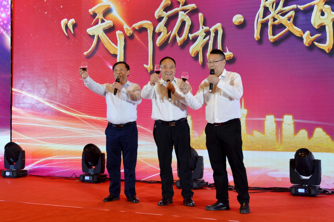 (中國紗線網總編王果剛、天門紡機副總經理肖少華、展東紡織機械專件廠總經理王國海晚宴共同祝酒)