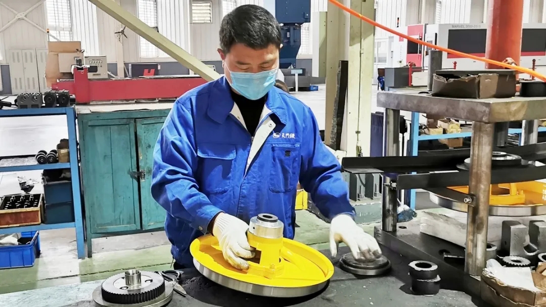 裝配工曾碧輝抓緊發貨需要配套的軸承組裝