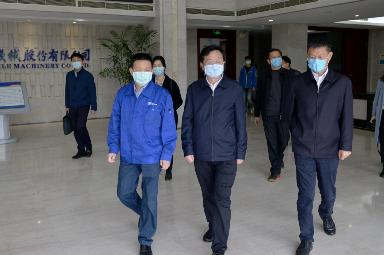 4月21日,湖北省人大常委會(huì)黨組成員、人大常委會(huì)副主任胡志強(qiáng)一行,在天門(mén)市委書(shū)記莊光明等領(lǐng)導(dǎo)的陪同下,到天門(mén)紡機(jī)調(diào)研指導(dǎo),實(shí)地了解企業(yè)防疫和復(fù)工復(fù)產(chǎn)情況。