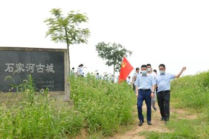 隨后,在謝紅宜鎮(zhèn)長(zhǎng)的引導(dǎo)下,黨員們高舉黨旗,踏訪了我國南方最大的新石器時(shí)代村落遺址--石家河文化遺址,饒有興趣地觀看了出土的石器、陶器、骨器、粳稻等文物。站在古城墻遺址上遠(yuǎn)眺,深刻感受源遠(yuǎn)流長(zhǎng)的中華文明,激勵(lì)黨員堅(jiān)持道路自信、理論自信、制度自信和文化自信。