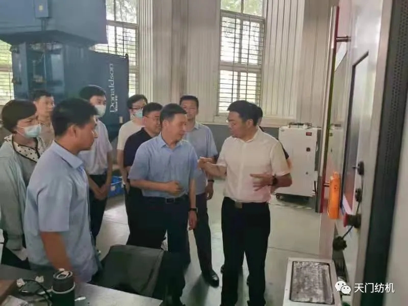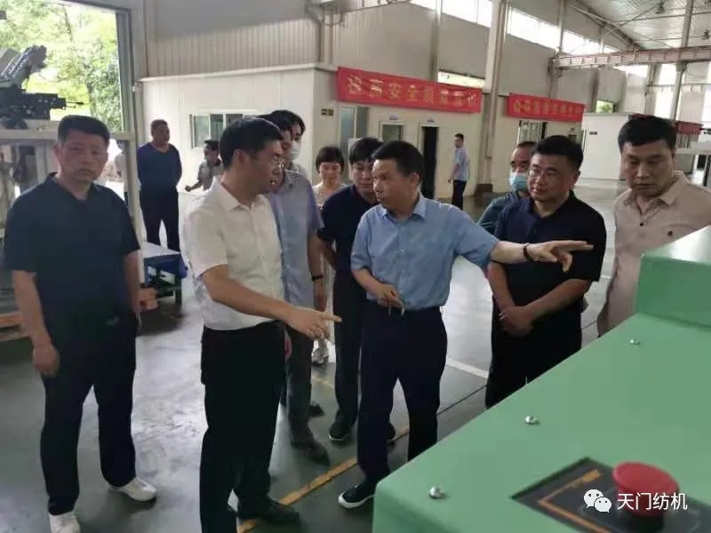 6月15日,酷暑炎熱,天門市委副書記、市長楊興銘,副市長高文博以及市經信局、市科技局、市政務服務和大數據管理局、市經濟開發區等相關部門負責人專程來到天門紡機,現場調研技術裝備改造升級和安全生產工作。