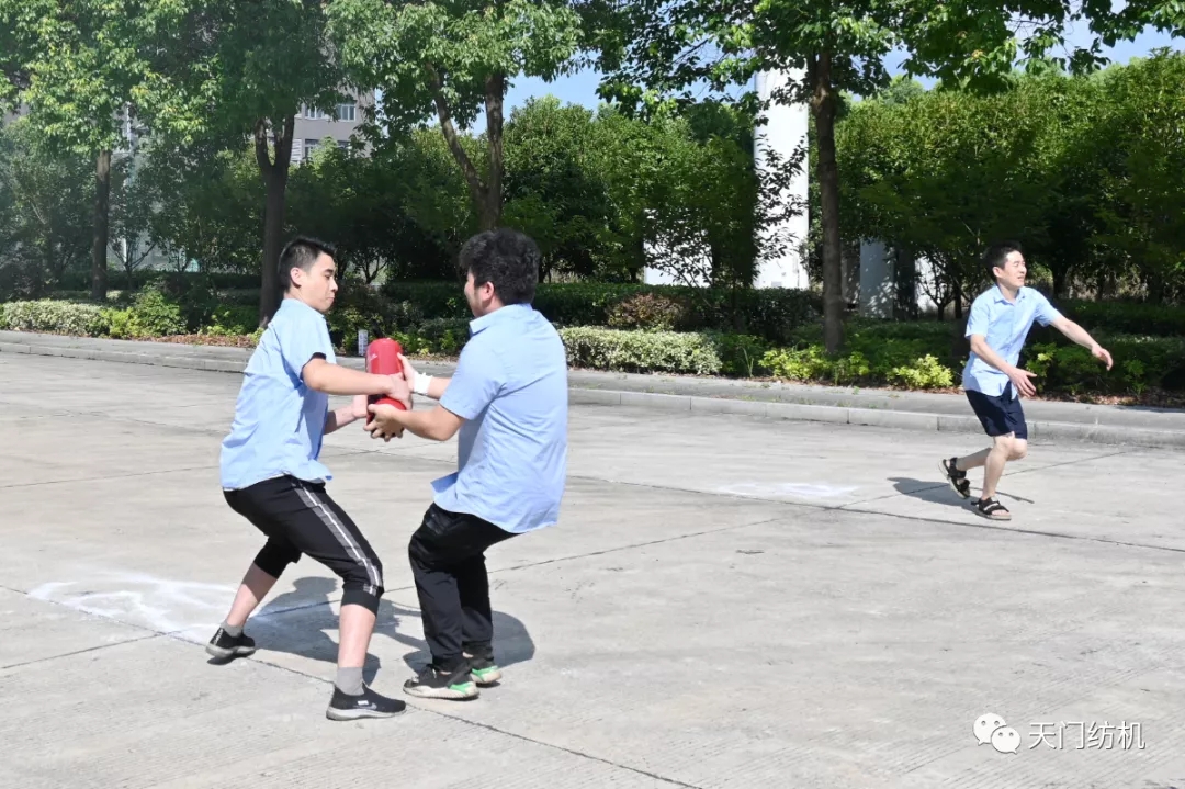 為鞏固“安全生產月”活動效果,檢驗消防應急處置能力,7月24日,天門紡機經過認真籌備,舉辦了年度消防技能競賽活動,活動分為滅火器接力撲救火災和消防水帶協作兩個項目,來自公司各部室、車間的8支隊伍參加了競賽。