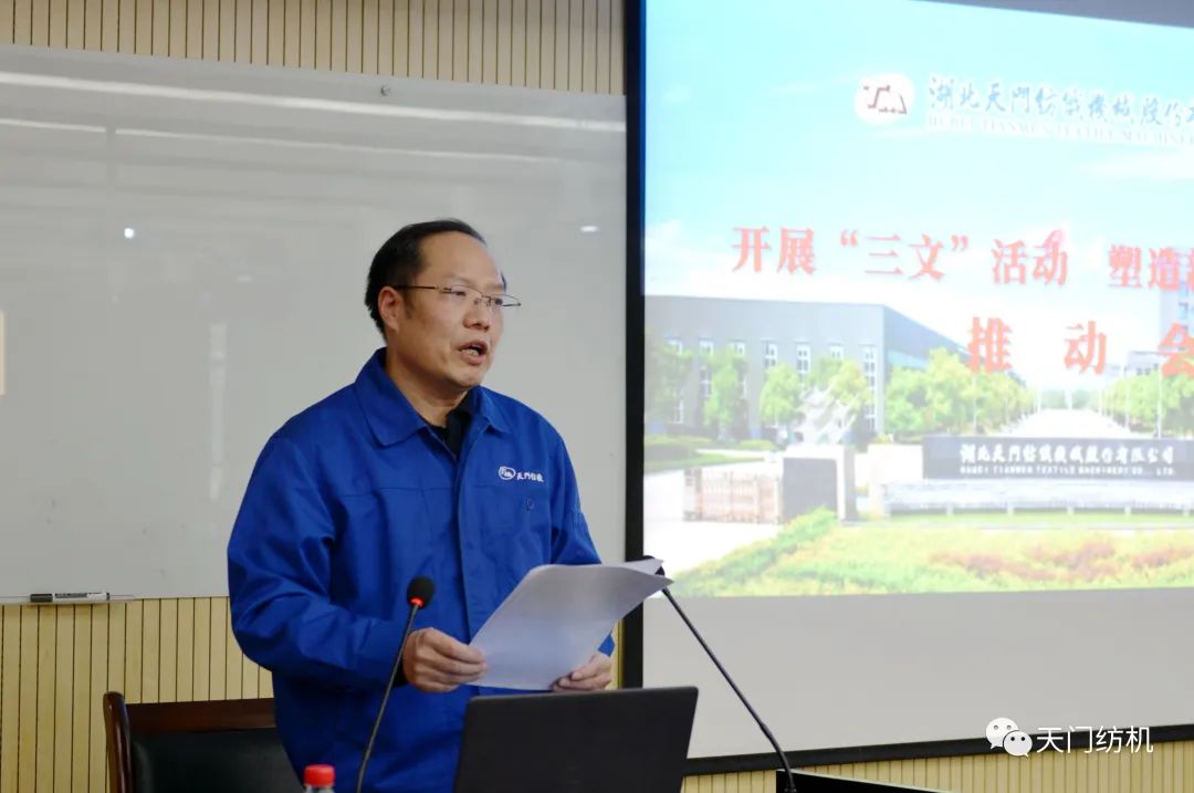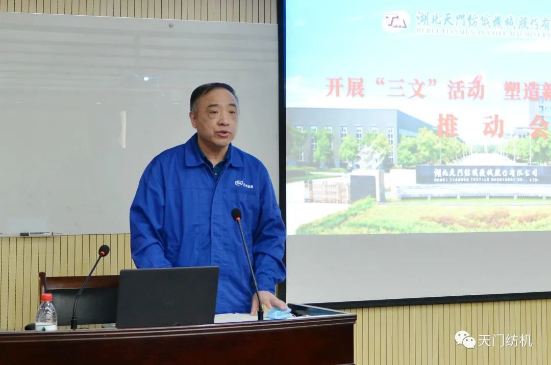 魯?shù)挛囊螅皇墙y(tǒng)一思想,提高認(rèn)識:“三文”活動的理念既是在當(dāng)前國際形勢復(fù)雜多變、新冠疫情反復(fù)無常、國內(nèi)經(jīng)濟受到嚴(yán)重沖擊、行業(yè)形勢日趨嚴(yán)峻的背景下提出的,目的和意義只有一個,就是要通過“三文”活動全面提高員工素質(zhì)、塑造新型員工隊伍、建立現(xiàn)代企業(yè)管理制度、實現(xiàn)高質(zhì)量發(fā)展,以應(yīng)對復(fù)雜多變的國內(nèi)外經(jīng)濟形勢,讓天門紡機立于不敗之地;“三文”活動的理念也是公司的一種文化傳承。十多年前,公司制定實施“提精神、創(chuàng)精品、當(dāng)精英”的“三精”戰(zhàn)略,并以此為引領(lǐng),推動新產(chǎn)品開發(fā)、技術(shù)改造、品牌建設(shè)等工作,促進(jìn)企業(yè)快速發(fā)展;兩年前,公司提出優(yōu)化社會、市場、內(nèi)部“三個”生態(tài)的理念,通過營造“以人為本”的內(nèi)部生態(tài)、共生共享的社會生態(tài)、利他共贏的市場生態(tài),把包容、共享、全球化的發(fā)展理念貫徹到企業(yè)生產(chǎn)經(jīng)營之中,影響到行業(yè)及社會多個層面,使公司形象得到極大提升、軟硬實力與日俱增,推動了企業(yè)高發(fā)展。“三文”與“三個生態(tài)”一脈相承,著重于員工素質(zhì)教育、塑造新型員工隊伍、營造良好的內(nèi)部生態(tài),其落腳點和最終目標(biāo)與后者是完全一致的。同時,開展“三文”活動是企業(yè)文化建設(shè)永不過時、永遠(yuǎn)不可或缺的重要內(nèi)容。通過文明禮儀教育,提高員工個人素質(zhì)、樹立企業(yè)良好形象,是當(dāng)前公司生產(chǎn)經(jīng)營和優(yōu)化人力資源的內(nèi)在需要;通過開展文化素質(zhì)提升活動,引導(dǎo)員工樹立正確的世界觀、人生觀、價值觀是員工自身工作、生活和企業(yè)文化建設(shè)的主觀要求;通過文體活動,促進(jìn)員工心身健康、增強企業(yè)凝聚力是企業(yè)和員工共同的美好愿望。因此,我們要把“三文”活動上升到企業(yè)生產(chǎn)經(jīng)營和文化建設(shè)一個更新的高度。二是明確特點,創(chuàng)新亮點:“三文”活動是長期性活動,是全方位的活動,是全員參與的活動,因此,我們一要堅持不懈,不斷努力;二要各方配合,通力協(xié)作;三要全體總動員,積極投入到各項活動中。同時,我們要多出主意、多想點子,創(chuàng)新活動的方式方法或形式內(nèi)容,創(chuàng)建天門紡機特色文化、特有文化和經(jīng)典文化。三是增強責(zé)任感,層層抓落實:在“三文”活動的通知中,我們已經(jīng)確定了組織機構(gòu),明確了目標(biāo)任務(wù),希望公司各部門負(fù)責(zé)人、活動小組各位負(fù)責(zé)同志,切實擔(dān)起責(zé)任,抓好落實。四是科學(xué)制定計劃,注重實效:我們在制定計劃時,既要合理安排時間,兼顧公司正常的生產(chǎn)經(jīng)營,又要統(tǒng)籌安排,協(xié)同推進(jìn),使生產(chǎn)經(jīng)營與文化建設(shè)相得益彰。