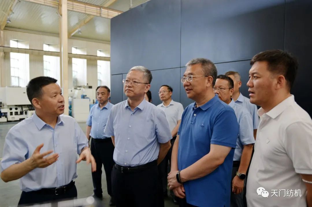 2023年6月27日下午,中國紡織工業聯合會秘書長夏令敏,中國紡織工業聯合會流通分會副會長徐建華、秘書長王水元蒞臨天門紡機調研,湖北省經信廳副廳長周開斌、消費品工業處副處長鄧龍陪同調研。