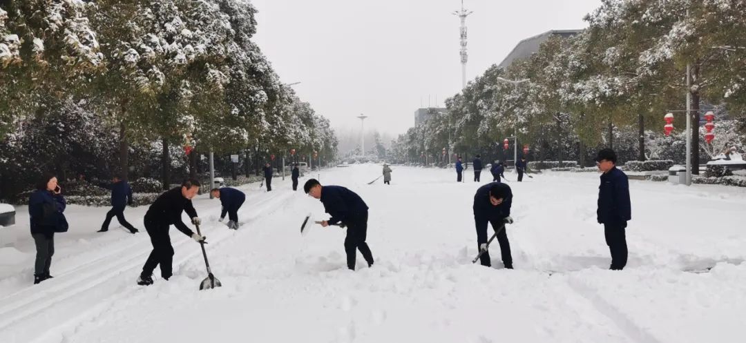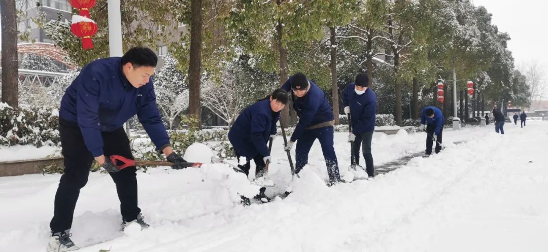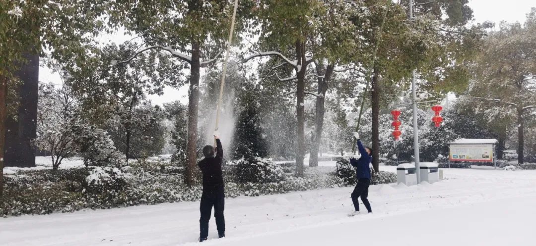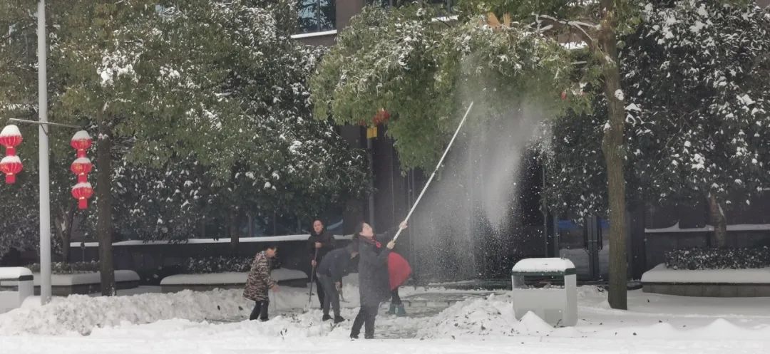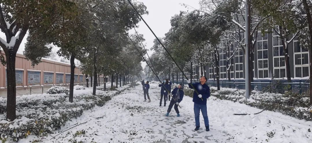 清晨的氣溫在零下4度左右,寒意刺骨。但大家不懼嚴(yán)寒,手握鐵鍬,高舉竹竿,竭盡全力清除積雪。