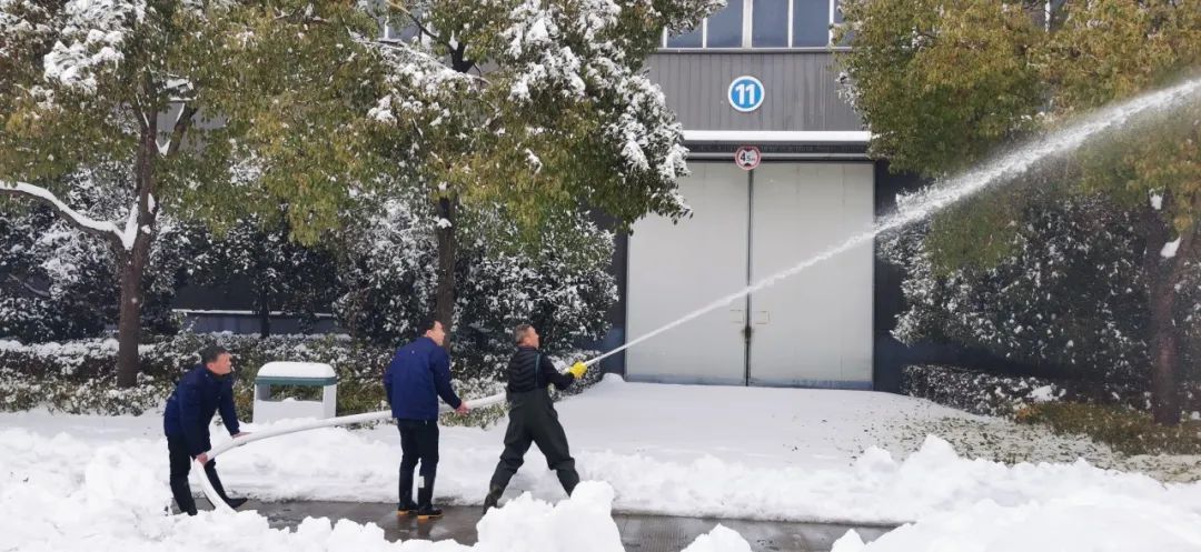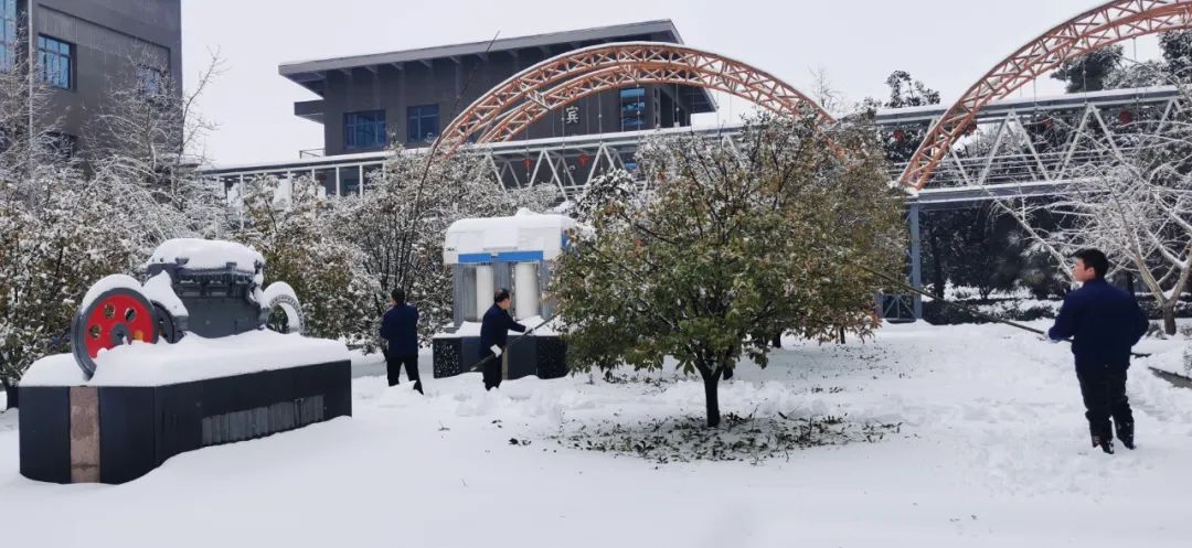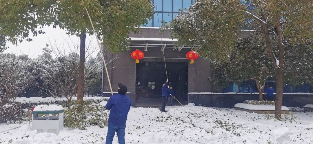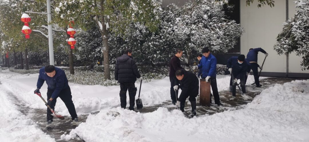 2月4日清晨,公司董事長沈方勇率先趕到公司,組織各批先期到達(dá)公司的干部員工,帶上鐵鍬和竹竿,清除路面和樹木積雪,以保證員工進(jìn)出的安全。