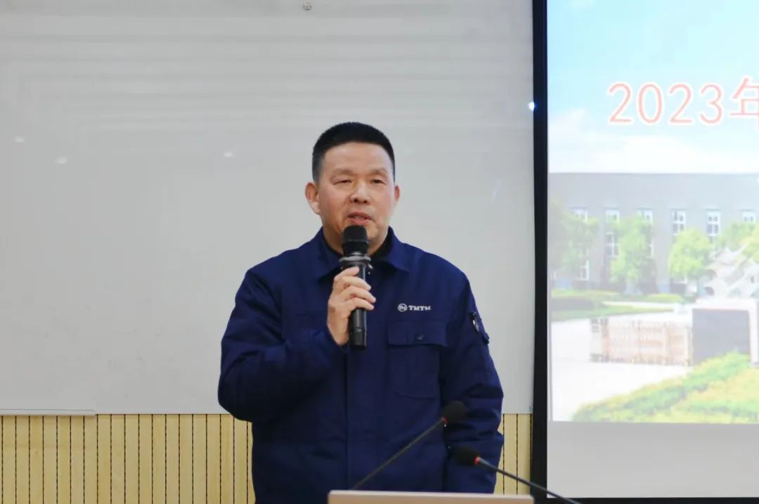 17名售后服務人員作了2023年度工作總結及技術交流;樊早兵總監作專業知識講座;鄭強總工程師安排布置了T1系列并條機改進工作事項;楊文峰副總經理作案例分享;于少波主任作經驗分享。
