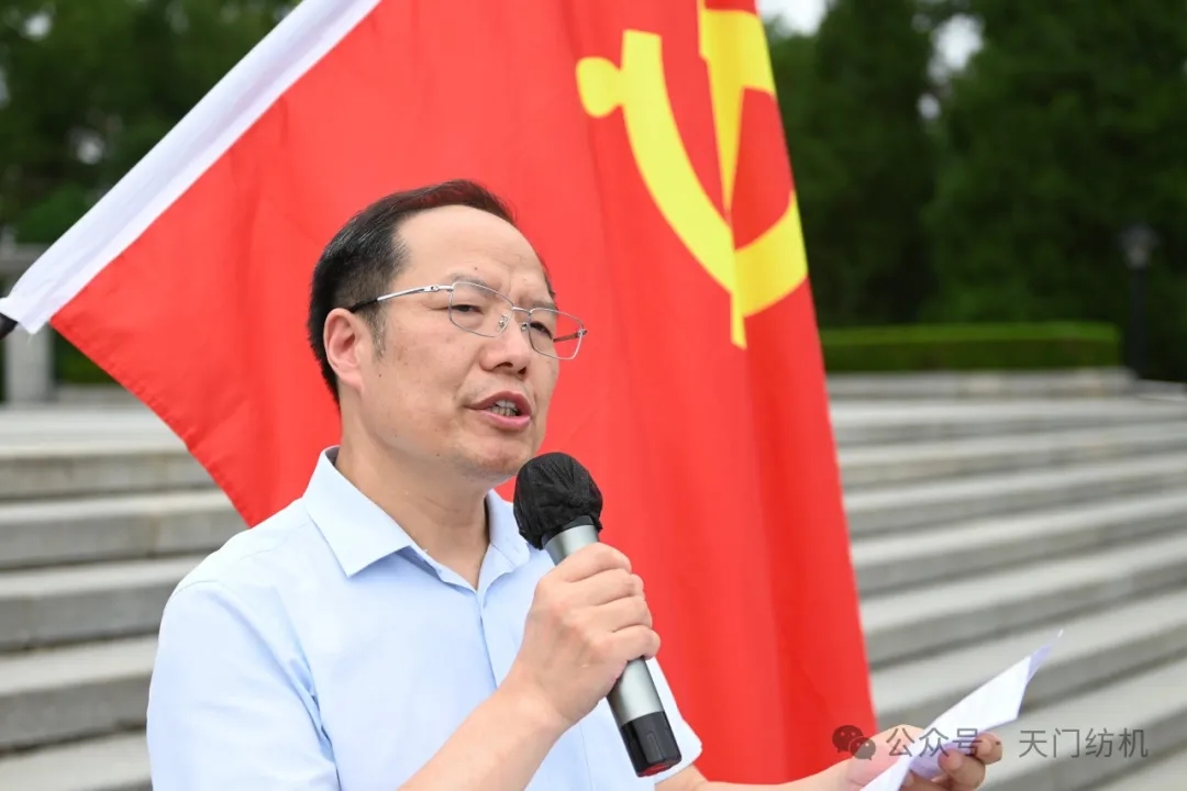 天門紡機黨委書記魯德文作了“追尋紅色印記,踐行理想信念”的主旨報告。他回顧中國共產黨奮斗歷程時說:一百多年來,中國共產黨帶領中國人民浴血奮戰、篳路藍縷,從勝利走向勝利,完成了站起來到富起來再到強起來的偉大壯舉,實現了第一個百年計劃,第二個百年計劃也在如火如荼地進行之中,以習近平總書記為核心的黨中央帶領全國人民以中國式現代化全面推進中華民族的偉大復興。他強調:無論歲月更迭、企業變遷,中國共產黨組織始終是天門紡機的政治引領、精神支柱、行動指南;無論是國有企業時還是民營企業,黨員干部始終是戰斗堡壘、時代先鋒,在企業生產經營活動中發揮著不可替代的作用。他希望全體黨員干部不忘初心,牢記使命,始終把企業放在心上,把工作重擔扛在肩上,為天門紡機高質量發展貢獻應有力量。