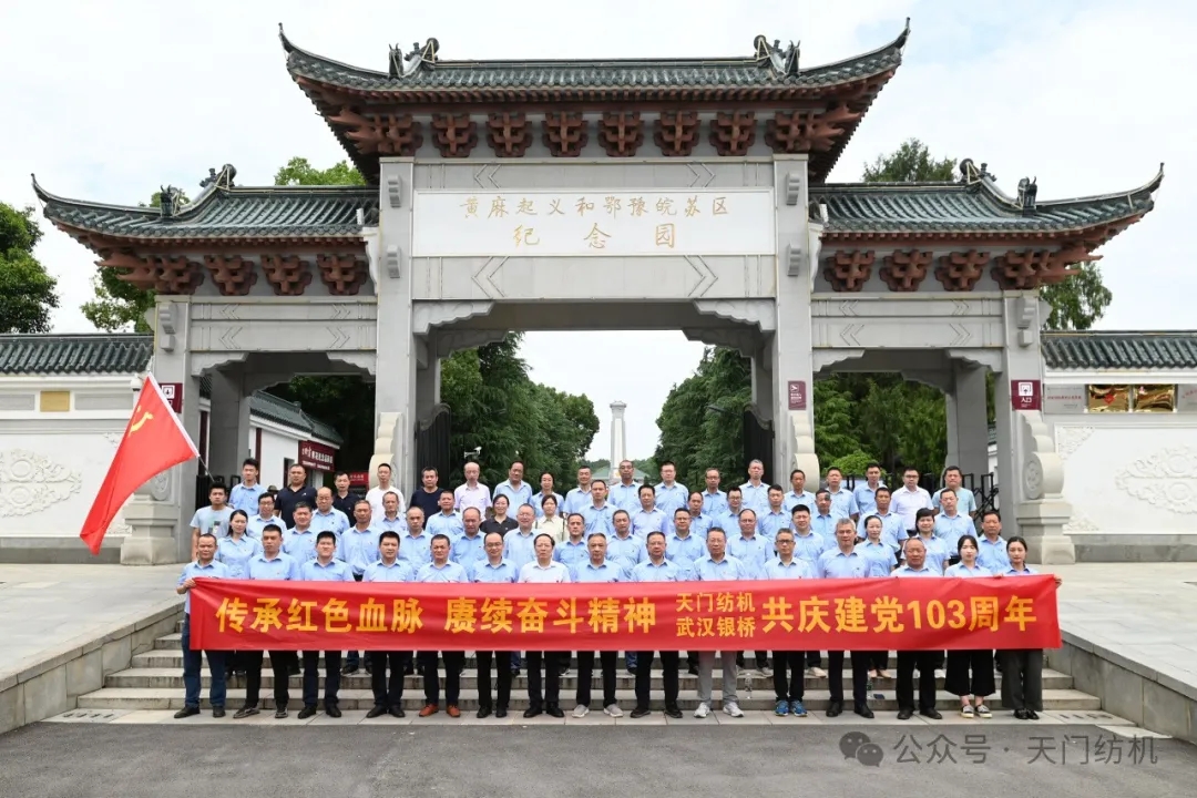 7月1日上午,天門紡機聯合武漢銀橋組織65名黨員奔赴中國第一將軍縣紅安,開展以“追尋紅色印記,凝聚奮進力量”為主題的黨日活動,以此慶祝中國共產黨誕辰103周年。
