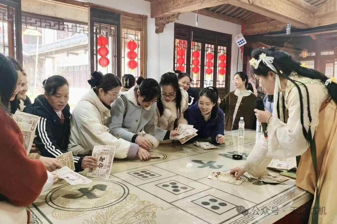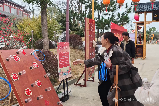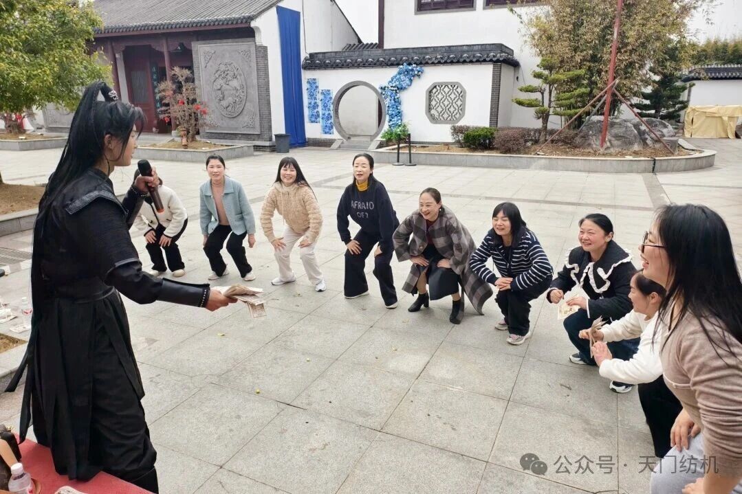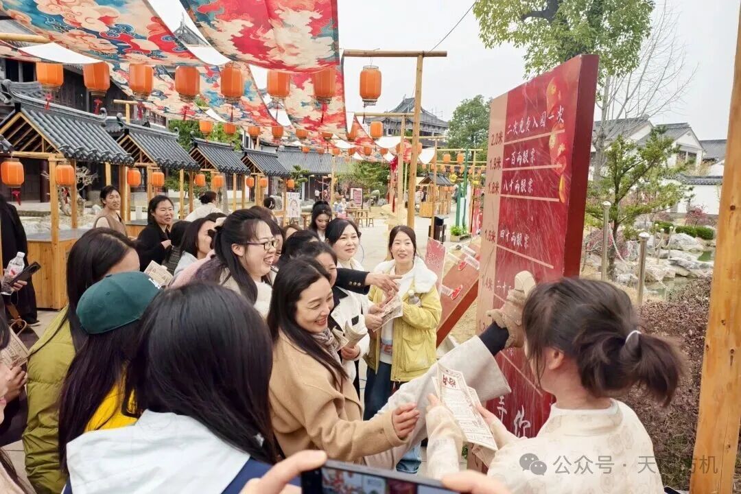 抵達(dá)天門(mén)三國(guó)夢(mèng)幻谷后,大家按分組有序開(kāi)啟游玩時(shí)光。該景區(qū)分為三國(guó)文化風(fēng)情區(qū)與動(dòng)力游樂(lè)項(xiàng)目區(qū)兩大板塊,十多處古風(fēng)場(chǎng)景玩法各異,10余位專業(yè)NPC扮演三國(guó)角色現(xiàn)場(chǎng)互動(dòng)打卡,女工們積極參與游戲,贏取“景區(qū)銀票”,用銀票體驗(yàn)射箭敲鑼、投壺、抽簽等趣味游戲,兌換精美禮品,歡聲笑語(yǔ)回蕩在景區(qū)的每一個(gè)角落。
